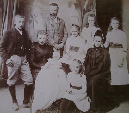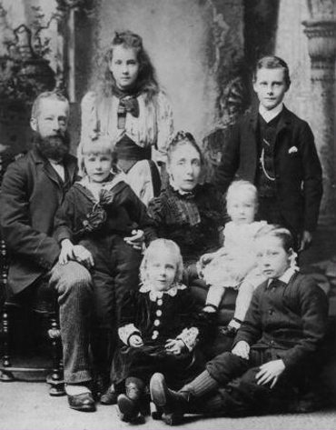 (from right to left) standing - Benjamin Charles, Benjamin Maturin, Ina, Lucy; sitting - Christina with baby Henry on her knee, Katherine, Emma Johnston (J16252), Alice
