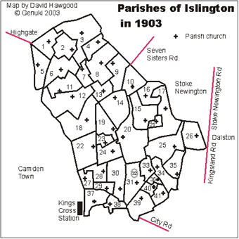 35) Parishes of Islington in 1903 map on the Genuki site by kind permission of David Hawgood - available online