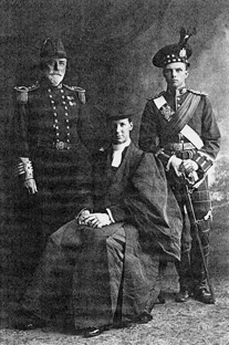 The photo shows Captain Bill Maturin, Rev Willy Outram and 2nd Lt J B Pennyman at a Levée in 1906.
