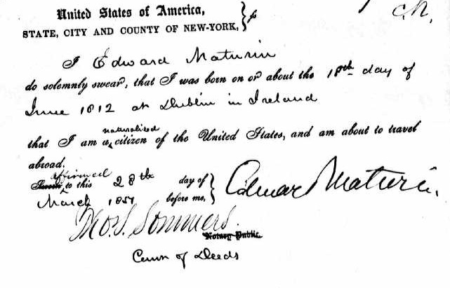 1113246) Desmond Clibborn Maturin, born July 15, 1858 (1881 Census - born in Australia, occupation “Clerk Fire Insurance”).